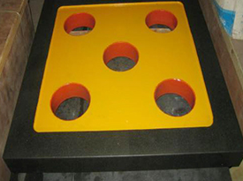 鑄鐵平板又稱鑄鐵平臺,外觀基本上是箱體式,工作面有長方形、正方形、圓形等,材料為HT200-300,QT400-600,采用刮研工藝,工作面上可加工V形、T形、U形槽、燕尾槽、圓孔、長孔等,是用于工件、設(shè)備檢測、劃線、裝配、焊接、組裝、鉚焊的平面基準(zhǔn)量具。
